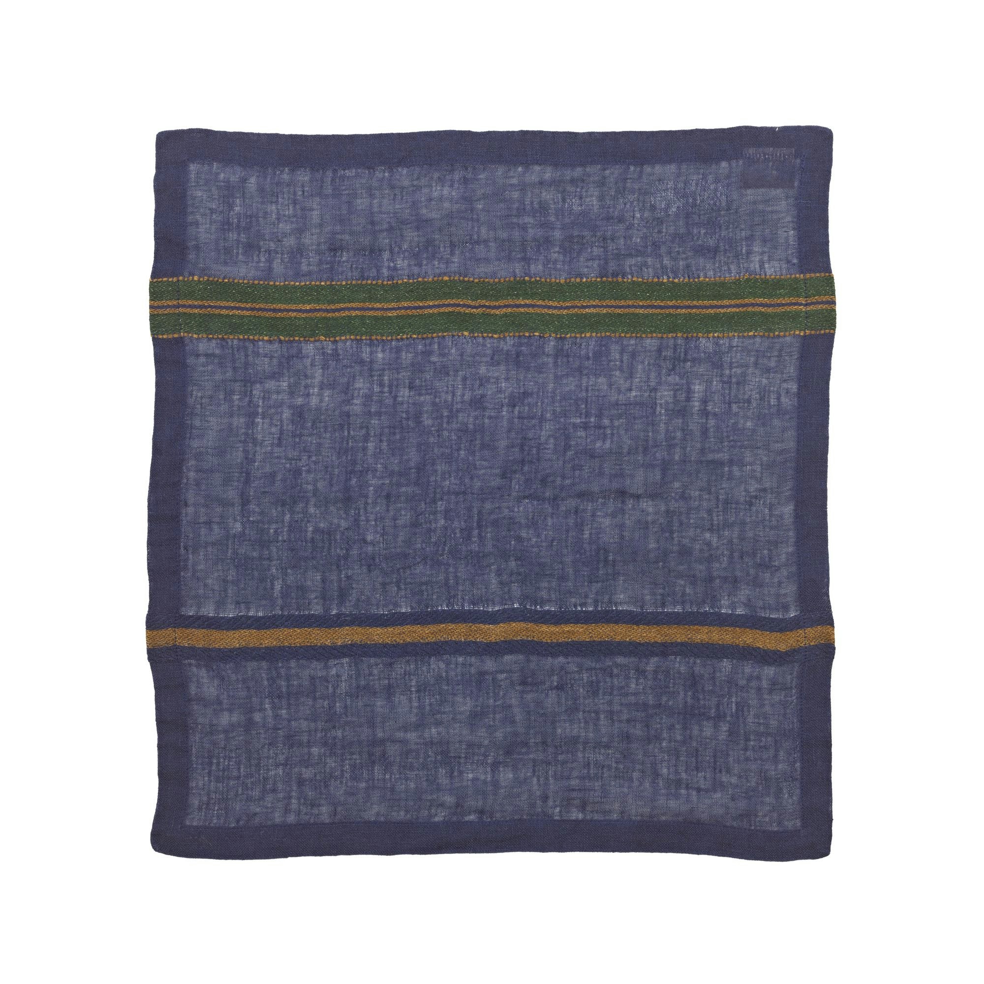 Gia staat op zichzelf, met een sterke uitstraling! Een open geweven servet met een gember- & indigostreep aan één kant en een gember-, racing green- & indigostreep aan de andere kant—ideaal om te mixen met Batsi of Andros, of met favorieten uit eerdere collecties zoals Hudson, Jasper of Pacific.